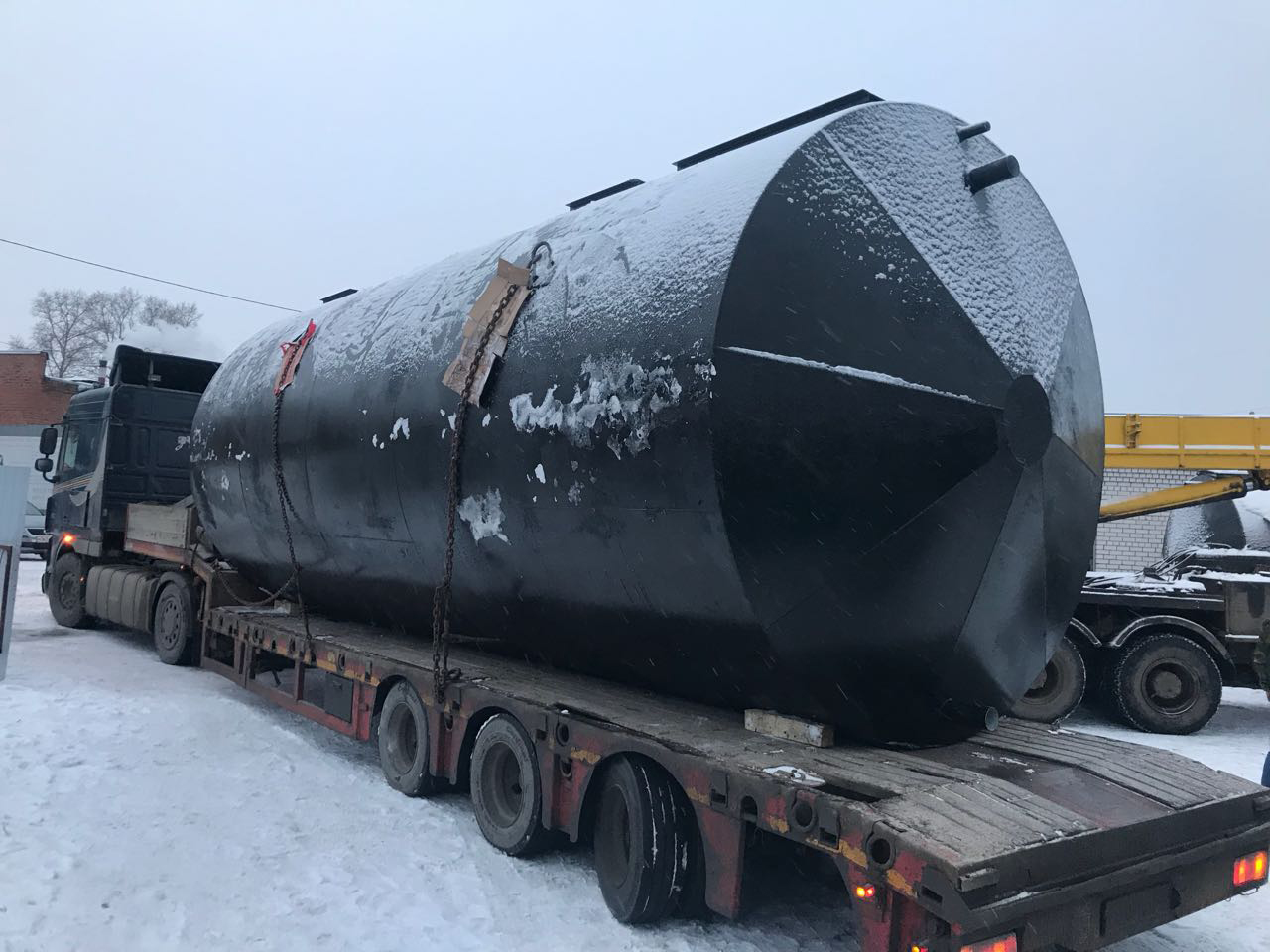 Габариты очистного сооружения: 2 емкости длиной 11600 / диаметром 2400 / весом 13800 кг.